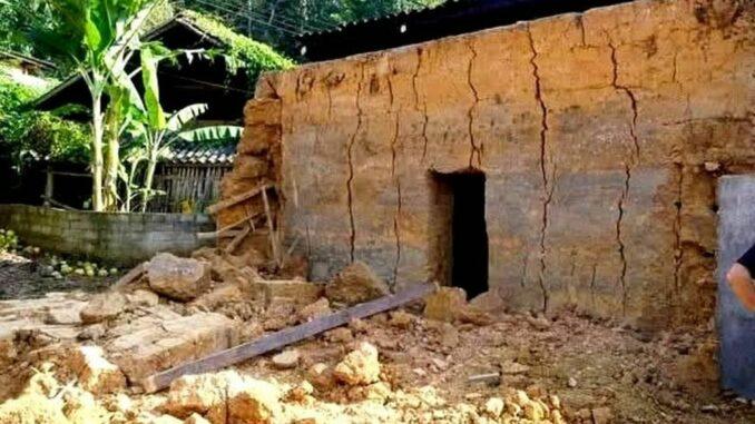 Trước đó, chiều ngày 3/10, tại thôn Na Pá, xã Sín Chéng (tỉnh Lào Cai), gia đình ông Lù Cồ Chương tháo dỡ nhà gỗ trình tường bằng đất để xây dựng nhà mới, có sự giúp đỡ của nhiều người là anh em và hàng xóm xung quanh.